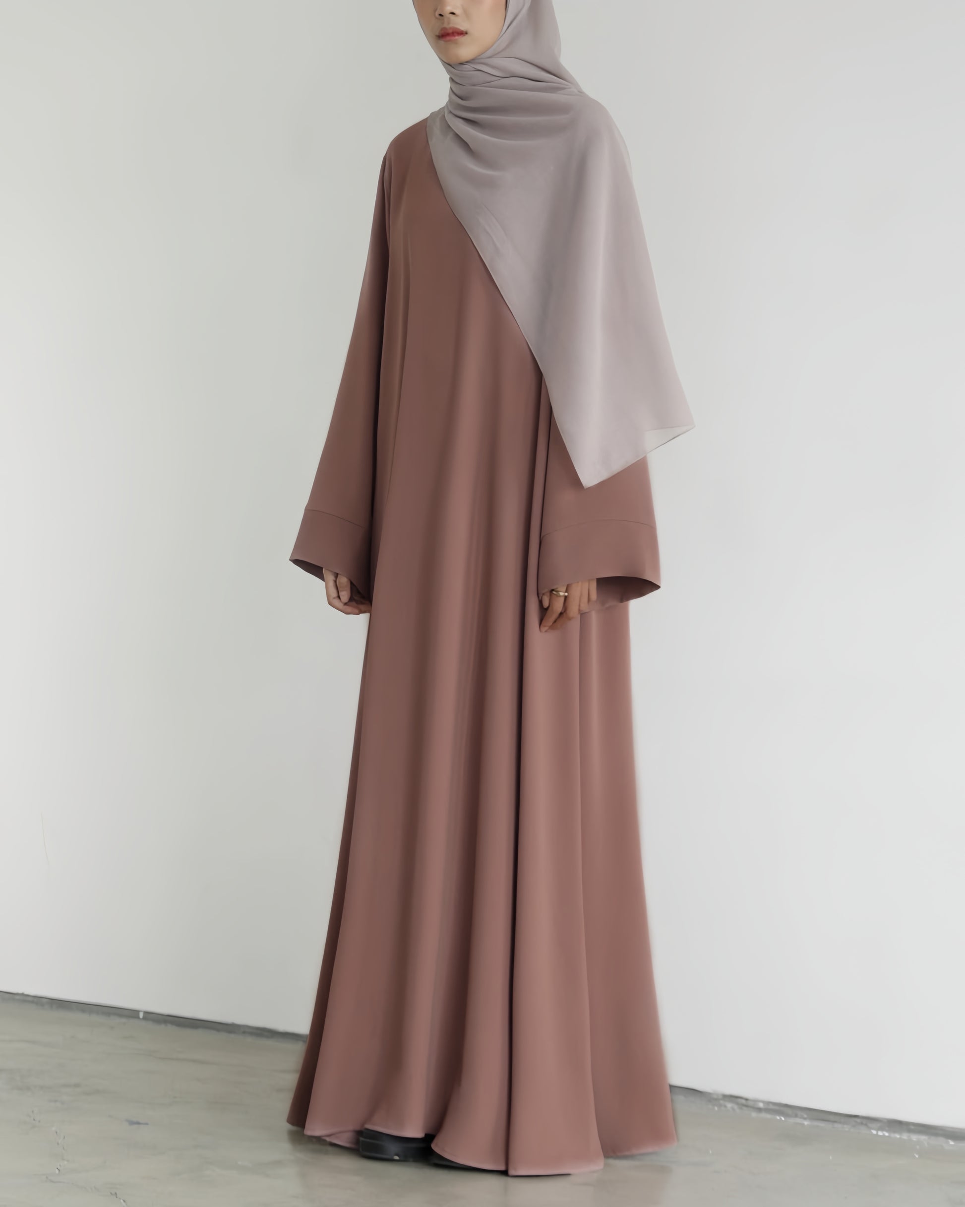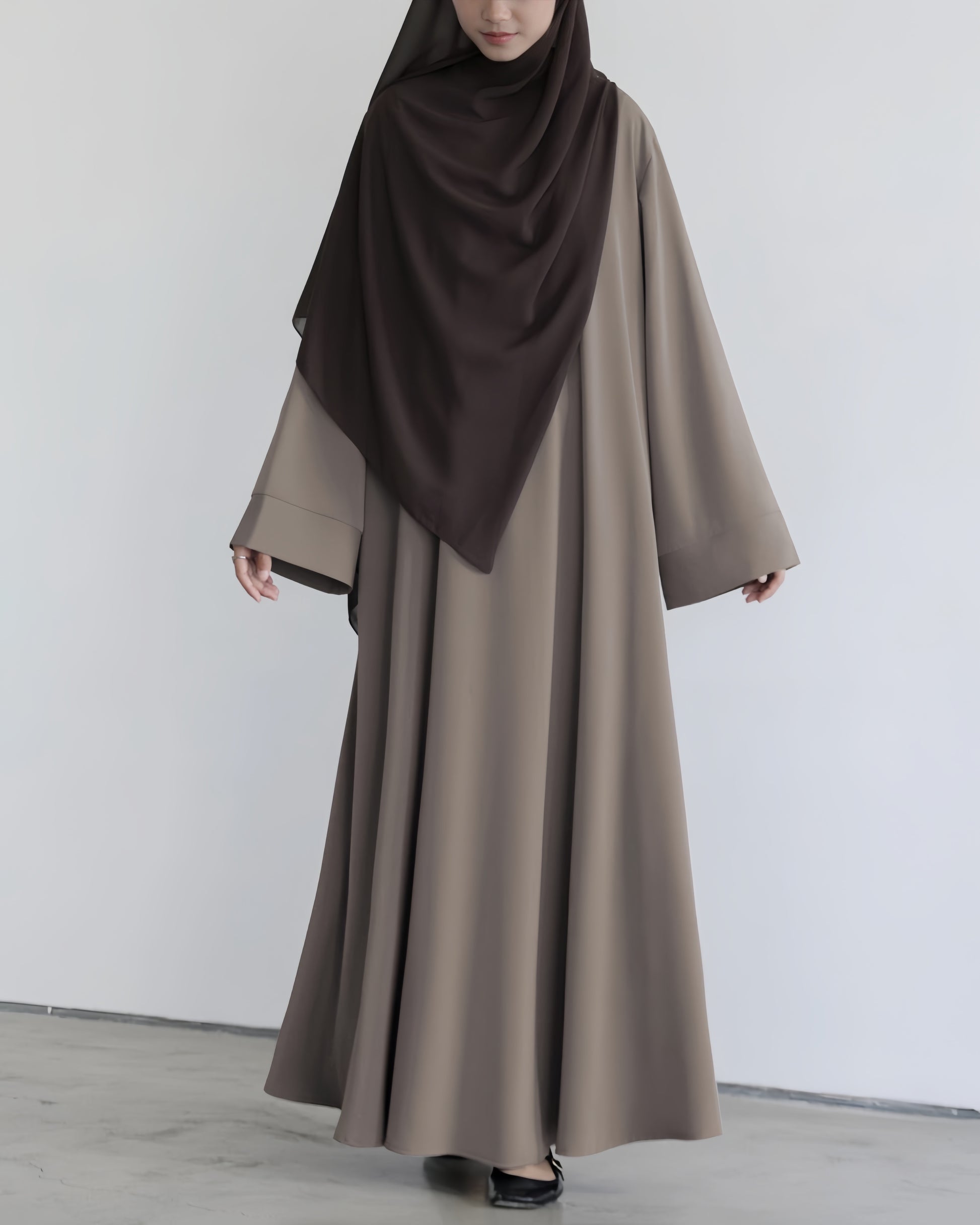 A modest wardrobe essential, our Essential Flow Abaya is a timeless and classic piece designed for everyday wear. This elegant abaya features a loose, relaxed fit that allows the high-quality fabric to flow beautifully, creating a graceful silhouette with every step.